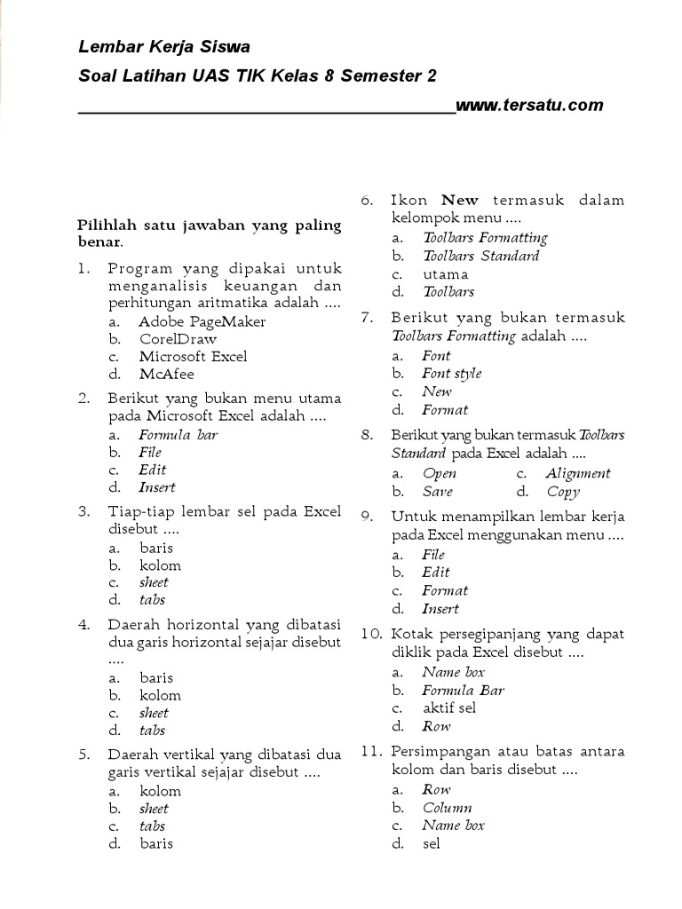 Soal Ulangan Kenaikan Kelas 8 Smp Matematika | Bagikan Kelas (Gerald Holmes)